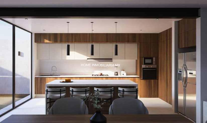 EQUIPAMIENTO Y ACABADOS • Minisplits en cada recámara • Pisos de mármol • Madera de ingeniería en habitaciones. • Cocina integral de madera de nogal con cubierta de granito, horno empotrado, microondas, parrilla y campana. • Cancelería de PVC color nogal, • Canceles de cristal templado en regaderas • Riego por aspersión • Zoclo de madera • Excelente proyecto de iluminación por medio de luz led • Calentador de paso • Hidroneumático.